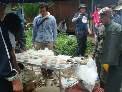お昼には、NPOの方が用意してくださった豚汁をいただきました。