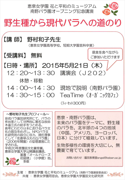【恵泉女学園 花と平和のミュージアム南野バラ園オープニング記念講演】