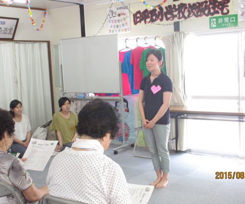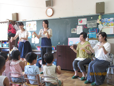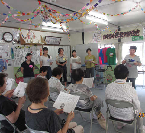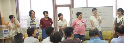 本学「恵泉お話を語る会(恵話会)」のメンバー7名が8月6日・7日に福島県でおはなし会を実施しました。6日は健院エルキューブ八山田でのデイサービスと保育所で活動し、7日は二本松市立かすみが丘保育所と浪江町より避難された方々がお住まいになっている同市内にある平石高田仮設住宅の集会所を訪問し、交流を深めました。被災地訪問を切望しながらもなかなか機会に恵まれませんでしたが、今回東京IIゾンタクラブ様からの支援と、かつての恵和会のメンバーで、現在福島県で教員として働いている卒業生のサポートのおかげで実現しました。初めての地方での活動となりましたが、4カ所の訪問で、メンバーは多くを感じ、学び、大変貴重な体験となりました。