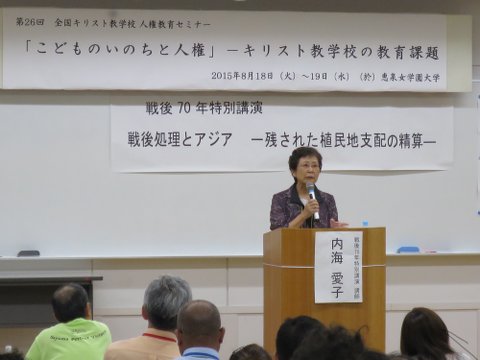8月17日~19日、第26回全国キリスト教学校人権教育セミナーが開催されました。 17日のフィールドワークに続き、18日~19日には本学を会場に「子どものいのちと人権」をテーマに、講演会、シンポジウム、分科会での話し合い、聖書研究、派遣礼拝が持たれました。