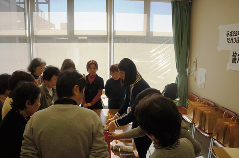 当日は、学生にとって初めての経験ということもあり、最初はかなり緊張気味だったようです。ですが、だんだんに緊張もほぐれ、参加者の作品作りのお手伝いをすることができました。慣れない講師役ではありましたが、参加者の方には喜んでいただけたようです。参加者の皆様は、ご自身で作ったお正月飾りとともに、きっとすてきな新年を迎えられることと思います。