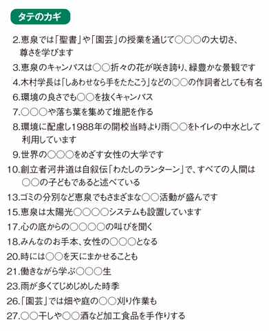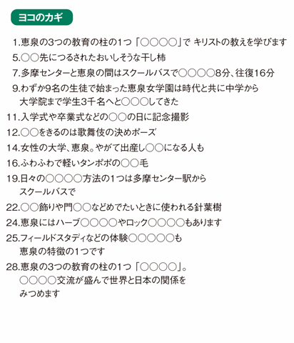 12月24日(金)読売新聞(朝刊・都内版)で掲載している「恵泉クロスワード」は、こちらからも応募できます。応募はこちら