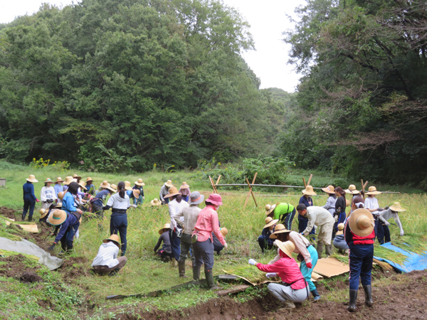 恵泉女学園大学では、地元農家、NPOみどりのゆび、町田市と共に、里地里山保全の一環としての田んぼ再生に取り組んでいます。
