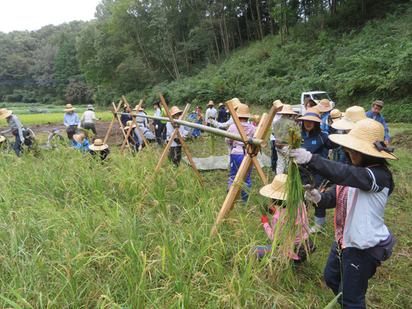 今年は台風と長雨で、稲刈りをたびたび延期しましたが、幸運にも稲が倒れなかったので、皆で協力して終えることができました。